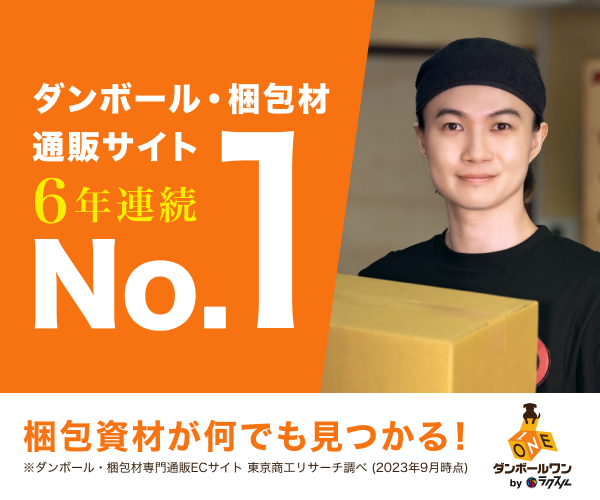 配送業者選びと同じくらい重要なのが、商品を安全に届けるための梱包資材。「ダンボールワン」 は6年連続注文件数No.1を誇る業界最大級の通販サイトです。ダンボール・緩衝材・テープなど5万点以上を取り揃え、1mm単位のオーダーメイドや印刷パッケージも初期費用ゼロで対応可能。最短当日出荷で急な在庫切れにも安心。梱包コスト削減と発注の効率化を実現したい法人企業様に最適です。